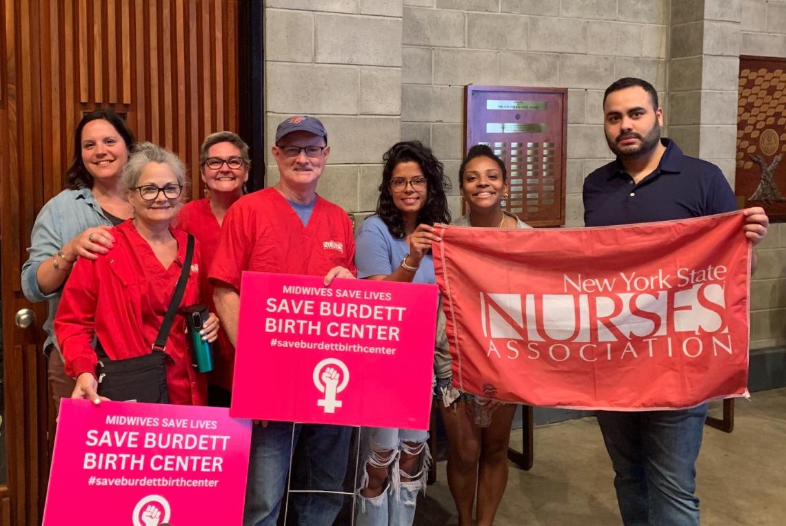 NYSNA nurses played a pivotal role in speaking up for Burdett because they knew that this closure would be a disaster for patients and already understaffed and overworked nurses at Ellis Medicine and Albany Medical Center. At various town halls and public events, nurses spoke about seeing firsthand the impact of Columbia Memorial closing its maternity services and warned elected officials and the community about the additional impact that closing the only maternity ward in Rensselaer County would have in a vulnerable community. Because of this victory, Burdett will continue to provide critical access to quality maternity care that capital region residents need and deserve, especially patients of color of low income who suffer disproportionately high maternity and infant mortality rates.