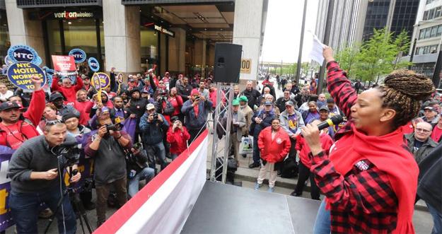 CWA President Chris Shelton spoke at the rally about the need for workers to unite together to fight back against corporate greed. “This is not just a strike against Verizon,” said Shelton. “This is a strike because this country’s lords and corporations have decided they want to get rid of unions. It’s about every person with a union card. It’s about every person who works for a living.”
