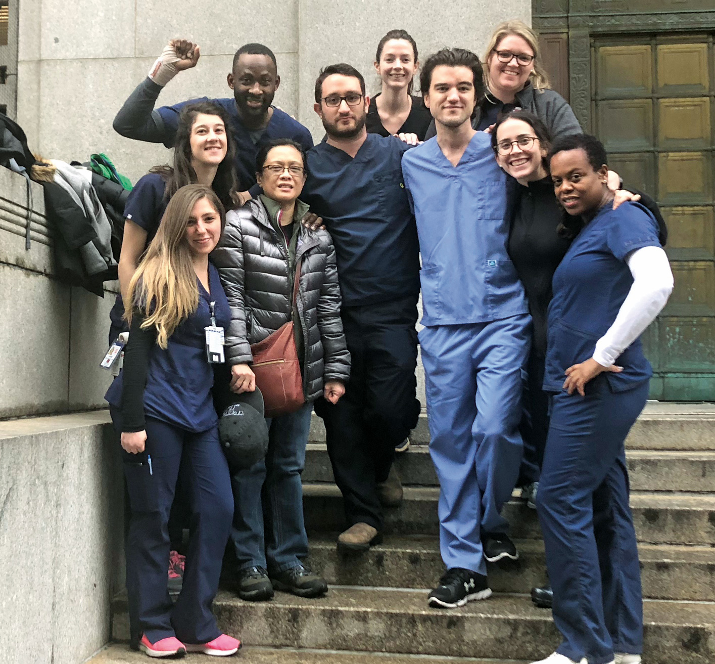 Photo: Recently assaulted Bellevue ED nurse’s co-workers at the courthouse to show support during a grand jury hearing of her assailant.