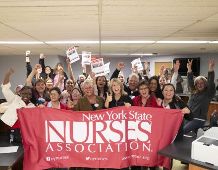 The New York State Nurses Association (NYSNA) is a union of 42,000 frontline nurses and healthcare professionals united for our patients, our practice, safe staffing, and healthcare for all. We are New York’s largest union and professional association for registered nurses. NYSNA is an affiliate of National Nurses United, AFL-CIO, the country’s largest and fastest-growing union and professional association of registered nurses, with more than 225,000 members nationwide.
