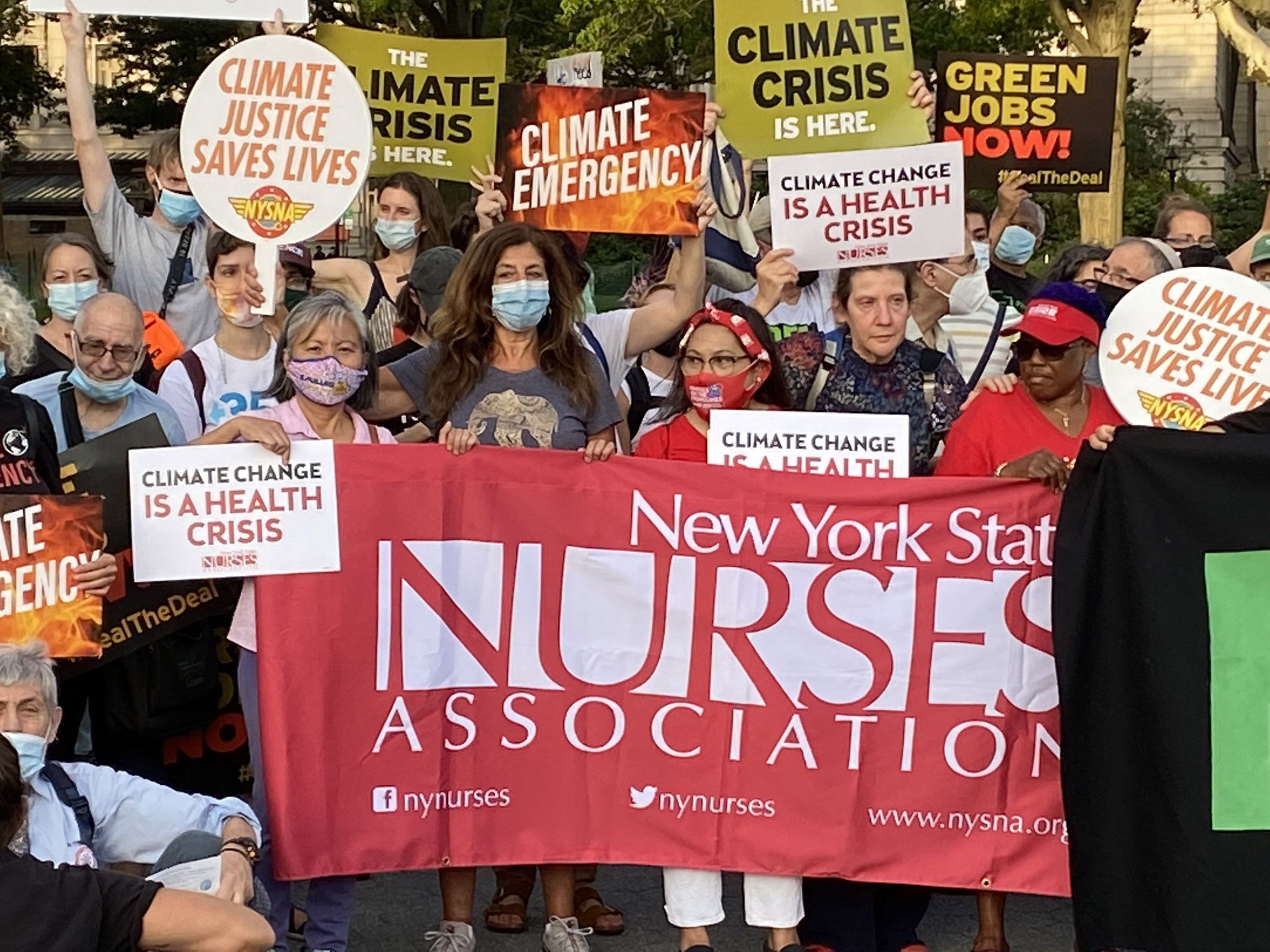 What does climate change have to do with nurses and healthcare? Climate change is affecting weather patterns — causing superstorms like Sandy and Katrina that have had severe impacts on public health. Our dependence on fossil fuels doesn’t just heat the globe, through — it is also responsible for the worst asthma rates in the country in places like the South Bronx. As nurses, we are on the front lines of public health and our dedication to our patients means advocating for them when they come to see us, but also making sure they live in healthy communities. Learn about opportunities to take action against climate change.