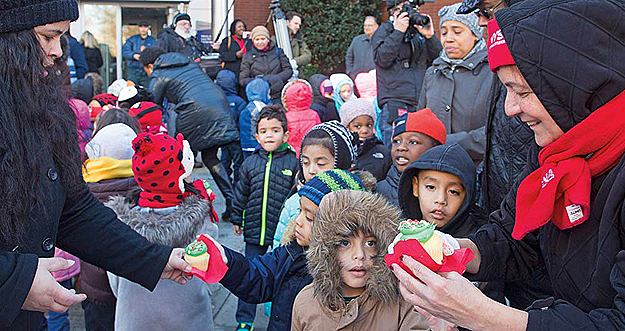NYSNA nurses greeted visitors to Montefiore Medical Center’s Moses, Weiler, Westchester Square, and Home Care divisions on December 5 with tables of holiday baked goods and holiday wishes, mitigated by a serious and sobering message: RN understaffing at the hospital remains a persistent problem.