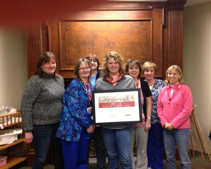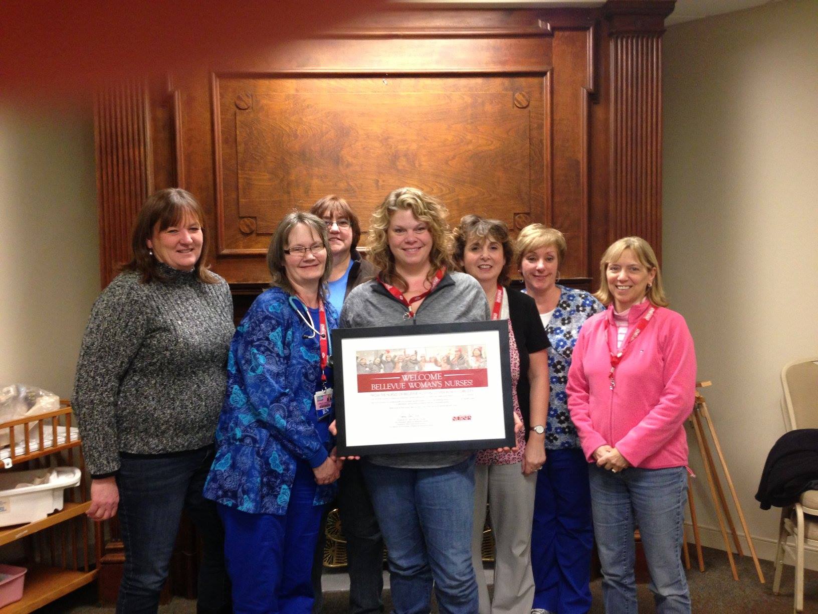 NYSNA’s HHC Executive Council President Anne Bové sent a welcome plaque on behalf of the Bellevue Hospital Center RNs in New York City to our newest NYSNA members at Bellevue Woman's Center!