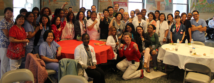 After many years of stalling by the Bloomberg administration, today nurses were celebrating that we are back at the table in mediation for a fair contract that protects the future of HHC, our patients, and nursing practice. “Our patients are our number one priority,” said Lindella Artman, RN and NYSNA president at Queens Hospital. Curlean Duncan, RN at Kings County, agreed: “We are speaking out so we can provide the best care for our patients.”