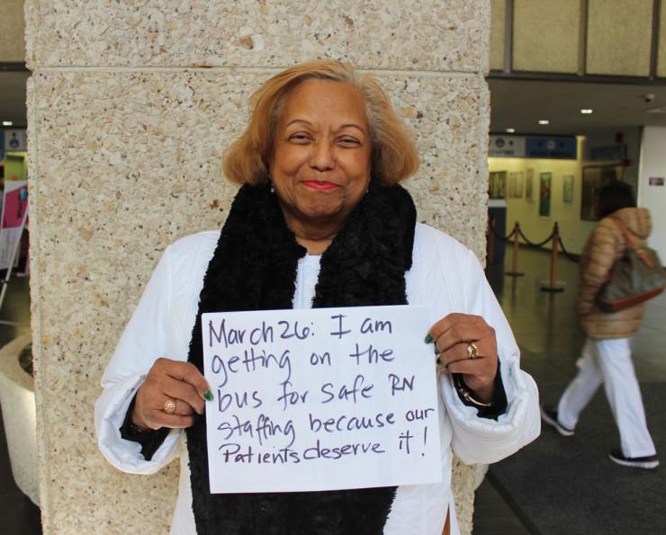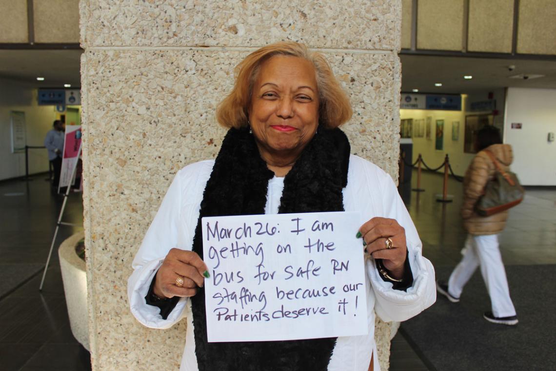 Recently, NYSNA posted a photo of Camille asking other nurses to join her to lobby for safe staffing. It went viral, generating 5,000 views on Facebook. When asked why she thought her message resonated, Camille replied, “I suppose it’s all the relationships I’ve made from my years as a nurse.”