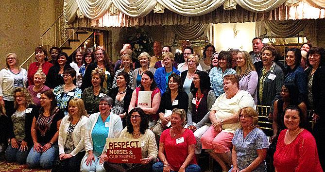 Nurses paused to pay a special recognition to those RNs who volunteer much of their time to serve on our negotiations committees, and for an inspiring message about how we can successfully realize our collective goals every day, every shift, in our workplaces.