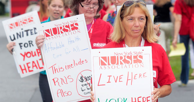 Capital Region NYSNA RNs from Nathan Littauer Hospital, Ellis Medicine, and Bellevue Woman's Center will rally simultaneously for a fair contract for patient care at a multi-facility informational picket planned for Wed., Oct. 8 from 2 pm to 6:30 pm.