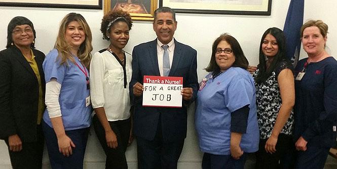 Senator Adriano Espaillat, along with RNs from Bronx-Lebanon and NY-Presbyterian |