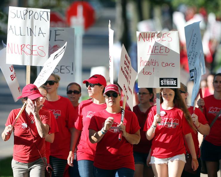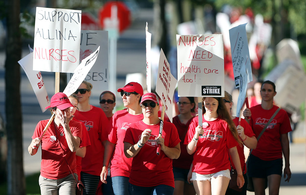 This week, 4,500 nurses from five Minnesota hospitals are striking for safe staffing, quality patient care, and their own health against Allina Healthcare, which is refusing to negotiate over safe staffing and insists on huge healthcare givebacks.