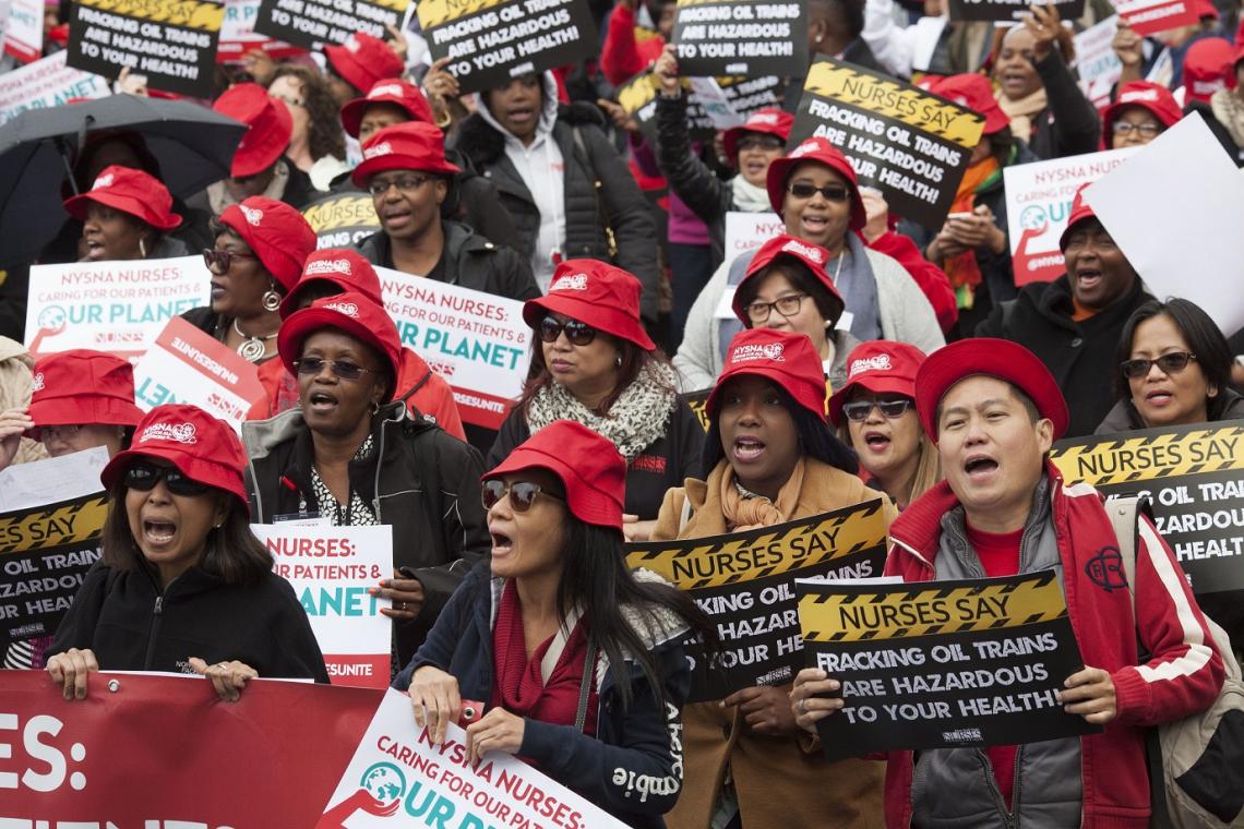 Fracked Bakken oil, which has the volatility of dynamite, is transported in train cars suitable for vegetable oil and orange juice, all over our state, including within one mile of 351 schools. Derailments have caused explosions all over the continent, from Mount Carbon, West Virginia, to Lac-Mégantic, Quebec, where 47 people were killed. NYSNA has put this issue front and center, staging a huge rally and dramatic “die-in” at our Convention, and protesting at the Port of Albany to calling for much tighter safety standards. Watch the video of our rally to learn more about what’s at stake. We are pleased to report that both Governor Cuomo and Attorney General Eric Schneidermann have taken action to enhance inspection frequency and safety standards around bomb trains.
