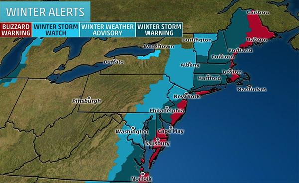 The National Weather Service has issued a Winter Storm Warning for portions of southern Connecticut and southeast New York, including the 5 Boroughs of New York City beginning Thursday, January 4, at 1 AM. Snow is forecast to begin around midnight Thursday, with the heaviest snow expected to fall during the morning commute. A total of 5 to 8 inches of snow is forecast, with higher amounts possible. Winds gusting as high as 50 mph will cause areas of blowing and drifting snow. Public schools will be closed.