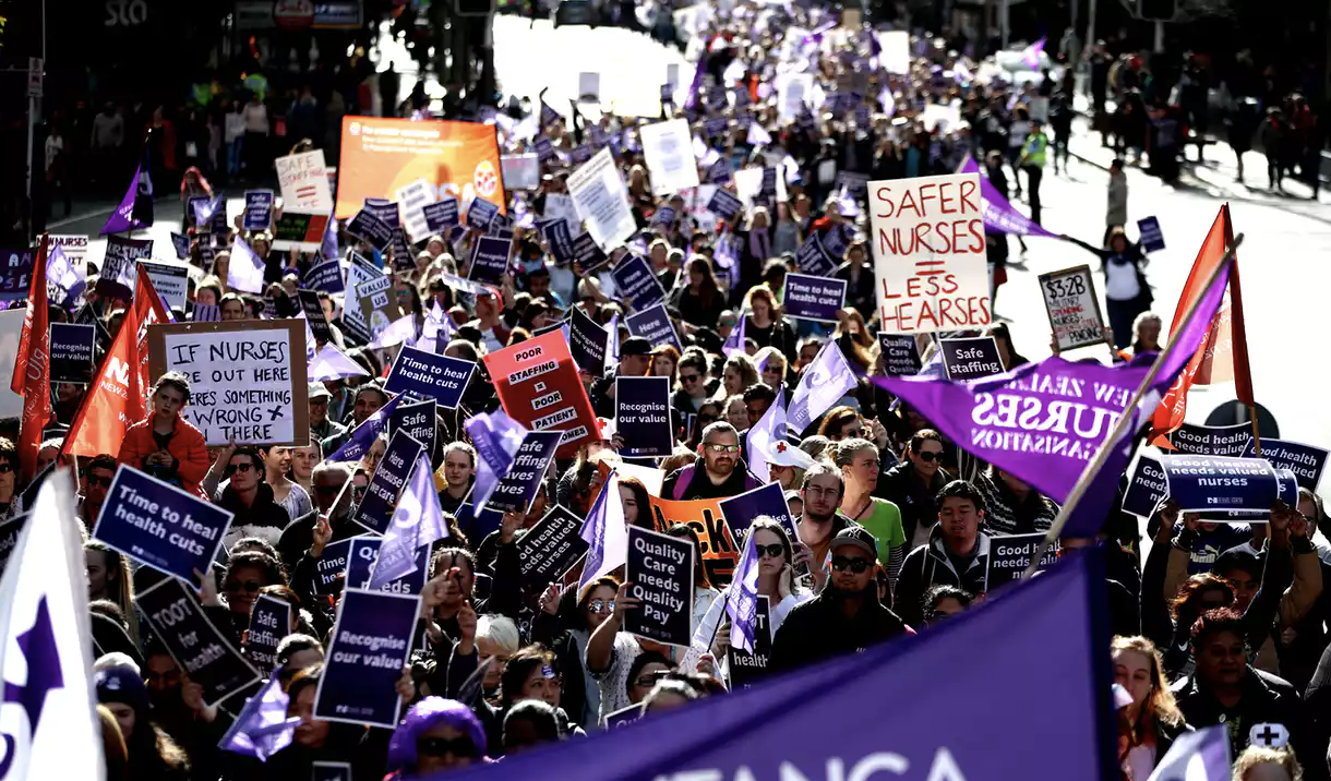In New Zealand, 30,000 nurses walked off the job in the first nationwide strike in 30 years. After months of negotiations, these RNs are demanding safe staffing conditions as they are overworked, underpaid and believe that patient care is being compromised due to these conditions.