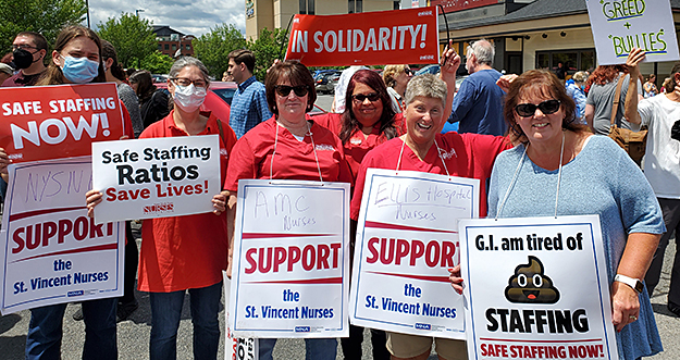 In January 2022, nurses at St. Vincent Hospital emerged victorious after waging the longest nurses’ strike in Massachusetts history. This was a David-and-Goliath fight between the Massachusetts Nurses Association, which was fighting for patient safety and respect for nurses, and Tenet Healthcare, the for-profit giant that owns St. Vincent. Tenet pulled out all the dirty tricks over the nine-month battle, buying full-page ads in the papers against the union and threatening to permanently replace 800 nurses. But MNA nurses prevailed by staying united, “one day longer and one day stronger.”