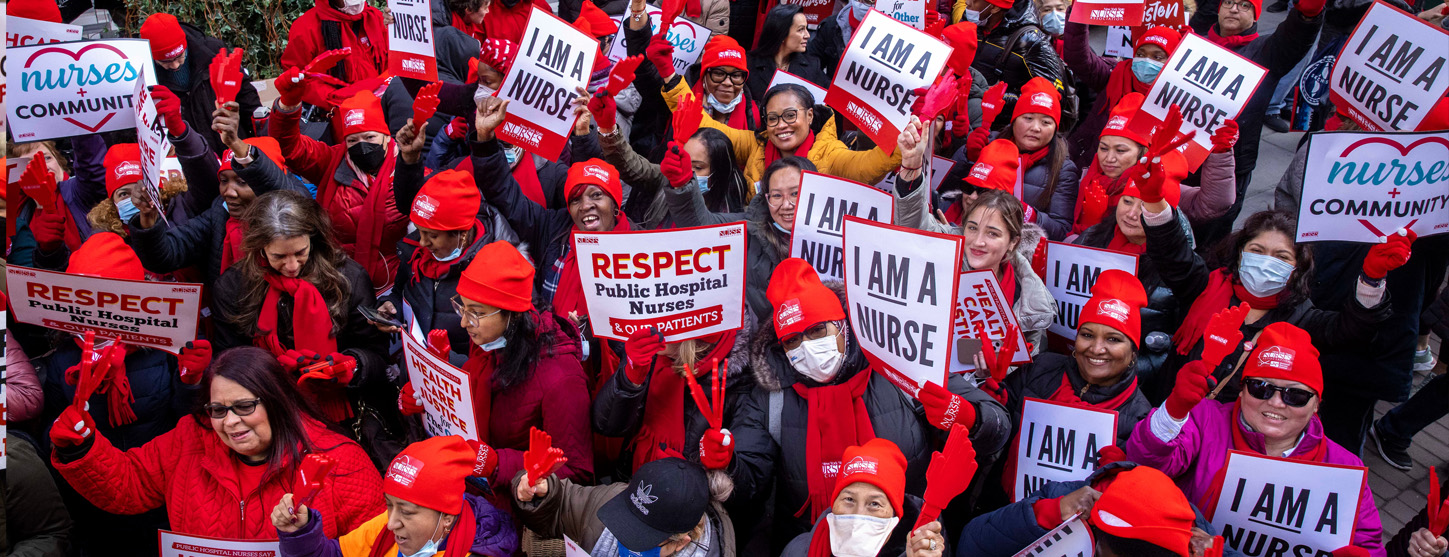 Nurses chanted, “We Saved New York,” reminding the public of their essential role during the pandemic. Despite being recognized as heroes in the wake of an unprecedented pandemic and being celebrated with the nightly banging of pots and pans, public hospital nurses have continued to endure unsafe staffing levels and a widening gap between their pay and the private sector, leading to high levels of turnover.