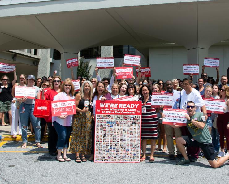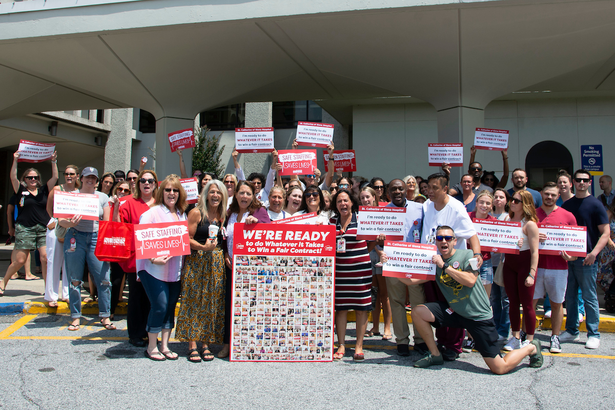 Nurses at St. Catherine of Siena in Smithtown have been fighting for a new three-year contract. On August 22, nurses finally won and ratified a new contract that includes the main demands that nurses fought for from the beginning: safe staffing and respectful wages. The breakthrough came after nurses voted “Yes” to authorize to strike.
