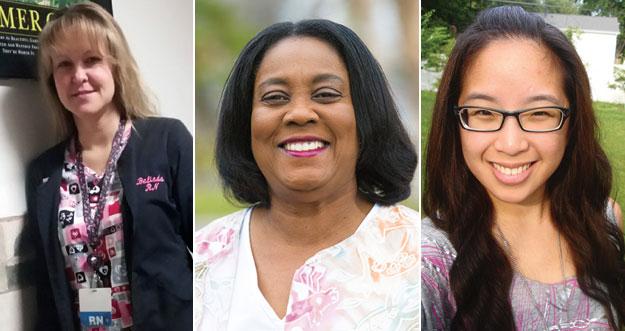 (Left to right) Belinda Carlson, RN, Brooks Memorial Hospital; Marie Beauduy, RN, Franklin Hospital; Jenny Chen, RN, Ellis Hospital