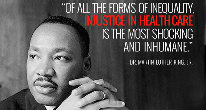 “Of all forms of discrimination and inequalities,” Dr. King said in 1966, “injustice in health is the most shocking and inhuman because it often results in physical death.”
