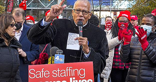 New York State Senator Robert Jackson attended the Nov. 17 NewYork-Presbyterian Columbia Hospital Speak Out and proclaimed, “Thirty-to-one is absolutely crazy!” Anthony Feliciano, Director of the Commission on the Public’s Health System added, “Safe staffing saves lives, is the reality.”