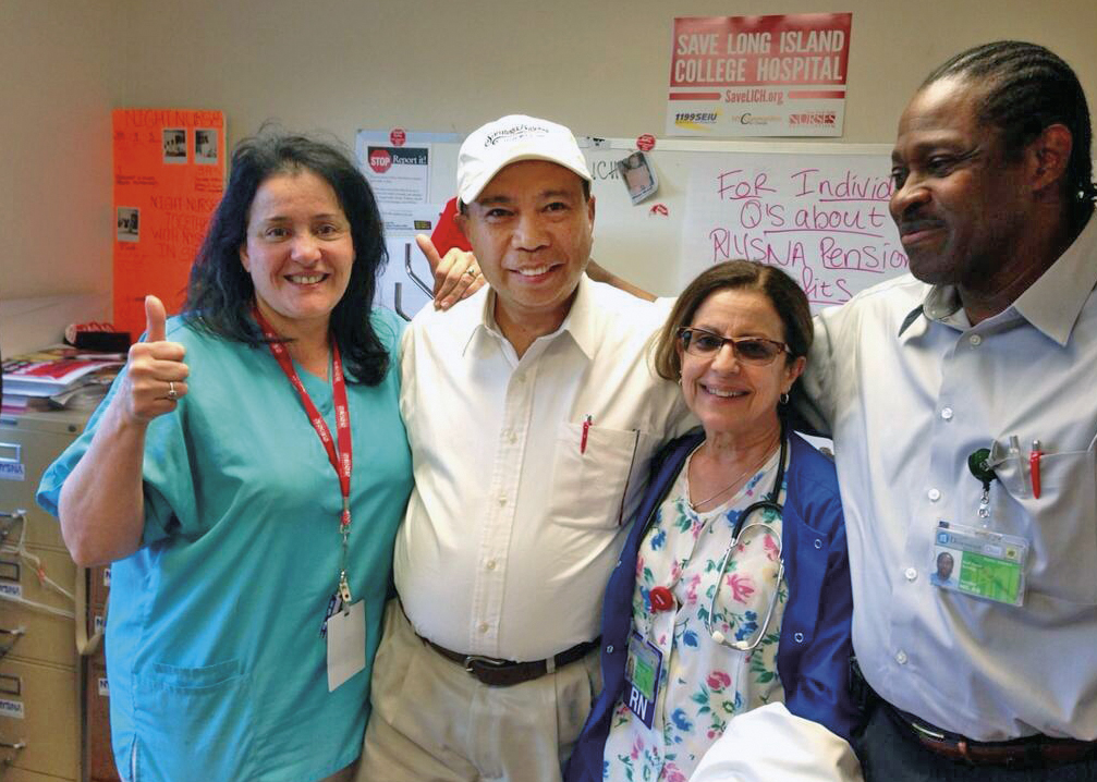 Early on, we formed a coalition with the doctors and service union to strategize this war, and then invited community leaders and officials to our meetings to increase their awareness of the situation and bring them on board. For SUNY’s first unlawful vote to close LICH in early February, we requested a NYSNA bus and opened it to everyone in the hospital and community. Even managers got on that bus. That set the tone for the entire campaign. NYSNA took the lead and we’ve carried our colleagues and neighbors with us, literally, wherever we needed to go to keep up the fight.