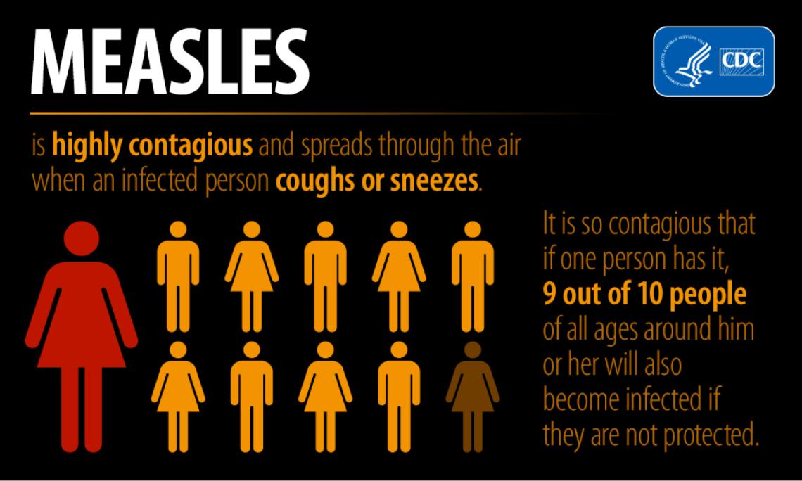 According to the CDC, measles is so contagious that if one person has it, up to 90 percent of the people close to that person who are not immune will also become infected.