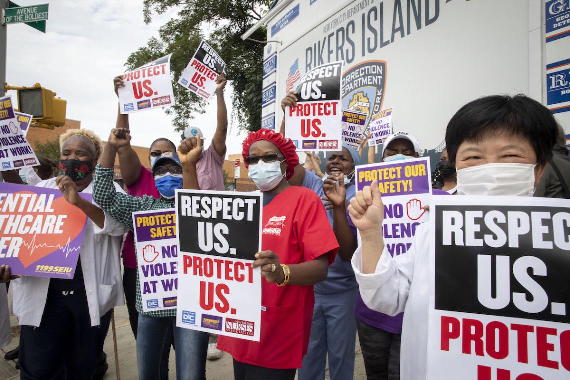Nurses at Rikers Island demand protections from workplace violence, August 2021