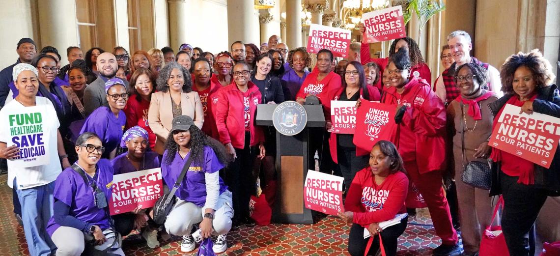 In addition to meeting with legislators, NYSNA nurses also held a press conference with healthcare workers, labor allies and elected officials, including New York State AFL-CIO President Mario Cilento, Majority Leader Andrea Stewart-Cousins, Senator Gustavo Rivera, Senator Jessica Ramos, Senator Robert Jackson, Assembly Member Harry Bronson, Assembly Member Karines Reyes, Assembly Member Phara Souffrant Forest and 1199SEIU.
