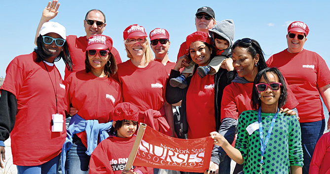 Wearing our “Safe Staffing Saves Lives” t-shirts, a team of NYSNA families took to the sunny Jones Beach boardwalk May 18, to participate in the 5th Annual Every Woman Matters Walk. The 3.1-mile walk was a fundraiser for women’s healthcare.