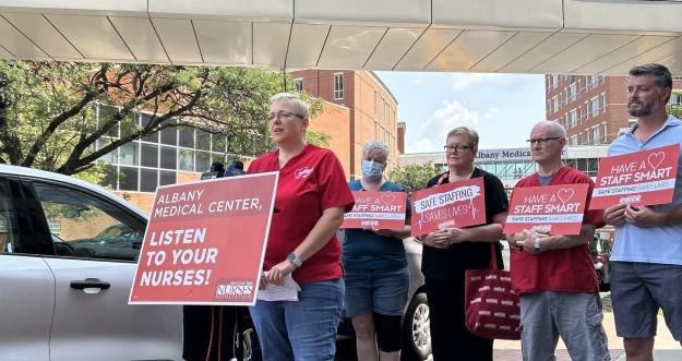 On August 2, nurses at Albany Medical Center held a press conference to update the community on the status of safe staffing and negotiations for a nurse contract at the hospital. The press conference came the morning after their existing contract expired, leaving nurses without a fair contract and the capital region without a solution to the staffing crisis at the area's only level one trauma center. Nurses have now called for a mediator, after the parties were still far from reaching an agreement on a new contract before the July 31 contract expiration. The administration at Albany Med has yet to agree to mediation.
