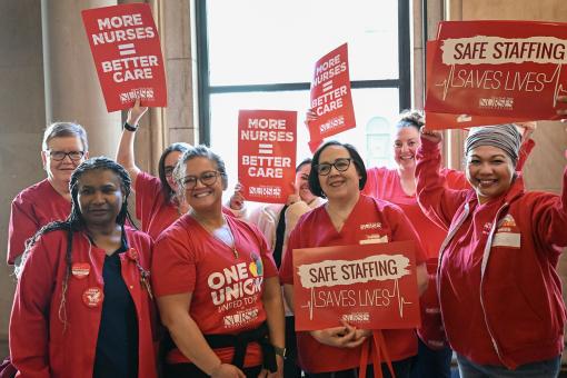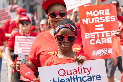 Image Group of nurses gathered together posing with raised fist. Image Report: The State of Safe Staffing Image Elmhurst nurses hold a petition board demanding pay parity for NYC Health and Hospitals nurses Image Lincoln Hospital nurses in scrubs smiling with peace hand signs Image Albany Medical Center Nurses at the 2023 NYSNA Convention Image Long Island Jewish Valley Stream/Northwell Nurses Rally for Safe Staffing, August 2020 Image Nurse and Daughter March in 2023 Labor Day Parade Image RWJH USW Nurse Leaders Join NYSNA at Convention 2023 Image NYSNA in solidarity with CIR-SEIU members fighting for a fair contract at NYC H+H/Woodhull Image Nurses rally to affirm NYSNA's stance that healthcare is a human right Image Albany Med Nurses in Albany lobbying for safe staffing standards and enforcement, May 2024 Image NYSNA nurses speak-out for budget justice in front of NYC Health +Hospitals/Bellevue, September 2020 Current page 1 Page 2 Page 3 Next page Next › Last page Last » Create Your Member Account Log In To Your Member Account I'm not sure, help me out