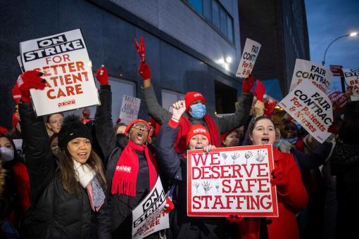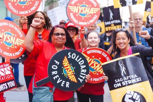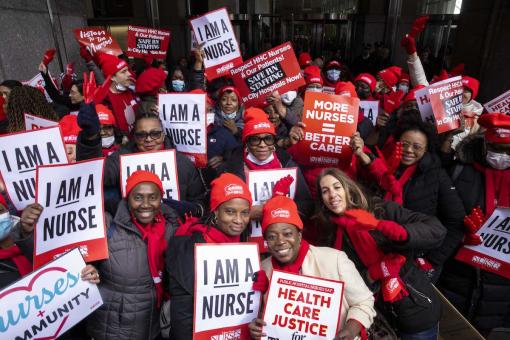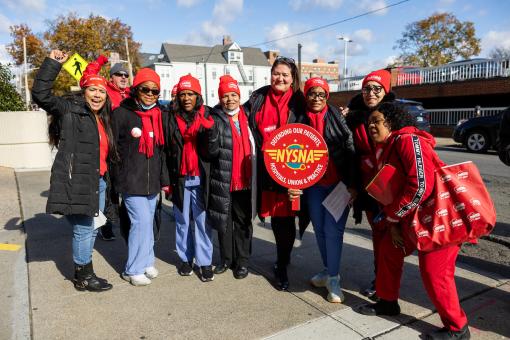 Image NYNSA in Solidarity with WGA / SAG-Aftra at a Strike Picket, August 2023 Image NYSNA members join United Autoworkers (UAW) members in a solidarity picket, October 2023 Image NYSNA Nurse Practitioners from NYC H+ H/Elmhurst celebrate Nurse Practitioners Week Image Montefiore Lower Hudson Valley Nurses hold a speak-out for a fair contract, November 2023 Image Nurses at Albany Med are locked out for holding a one-day strike to protest lack of COVID-19 safety standards, Dec 2020 Image Nurses at Montefiore Medical Center’s Moses and Weiler Campuses demand Safe Staffing, October 2022 Image Nurses at Rikers Island demand protections from workplace violence, August 2021 Image NYNSA member at the 2023 Lunar New Year Parade Image NYSNA Nurses march during the 2023 New York City Labor Day Parade Image NYSNA joins the Campaign for New York Health and allies to celebrate the reintroduction of the New York Health Act, August 2023 Image Public sector nurses from New York City Health+Hospitals kick off fair contract campaign on MLK Jr. Day 2023 Image Nurses at Mt. Sinai lead historic strike for a fair contract, January 2023 First page « First Previous page ‹ Previous Page 1 Current page 2 Page 3 Next page Next › Last page Last » Create Your Member Account Log In To Your Member Account I'm not sure, help me out
