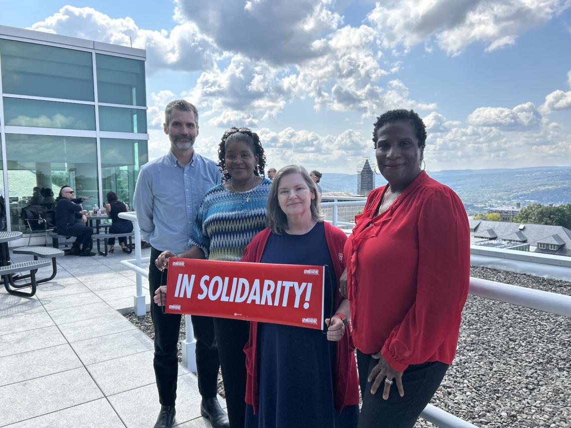 This past weekend, NYSNA President Nancy Hagans, BSN, RN, CCRN, First Vice President Judith Cutchin, DNP, RN, and Treasurer Margaret Franks, BSN, RN, MEDSURG-BC attended the AI and the Future of Work conference alongside National Nurses United. Over the course of the weekend in Ithaca, our leaders listened to presentations on the impact of AI on workers and workers' rights and had the opportunity to brainstorm potential solutions and paths forward with union siblings from across the world.