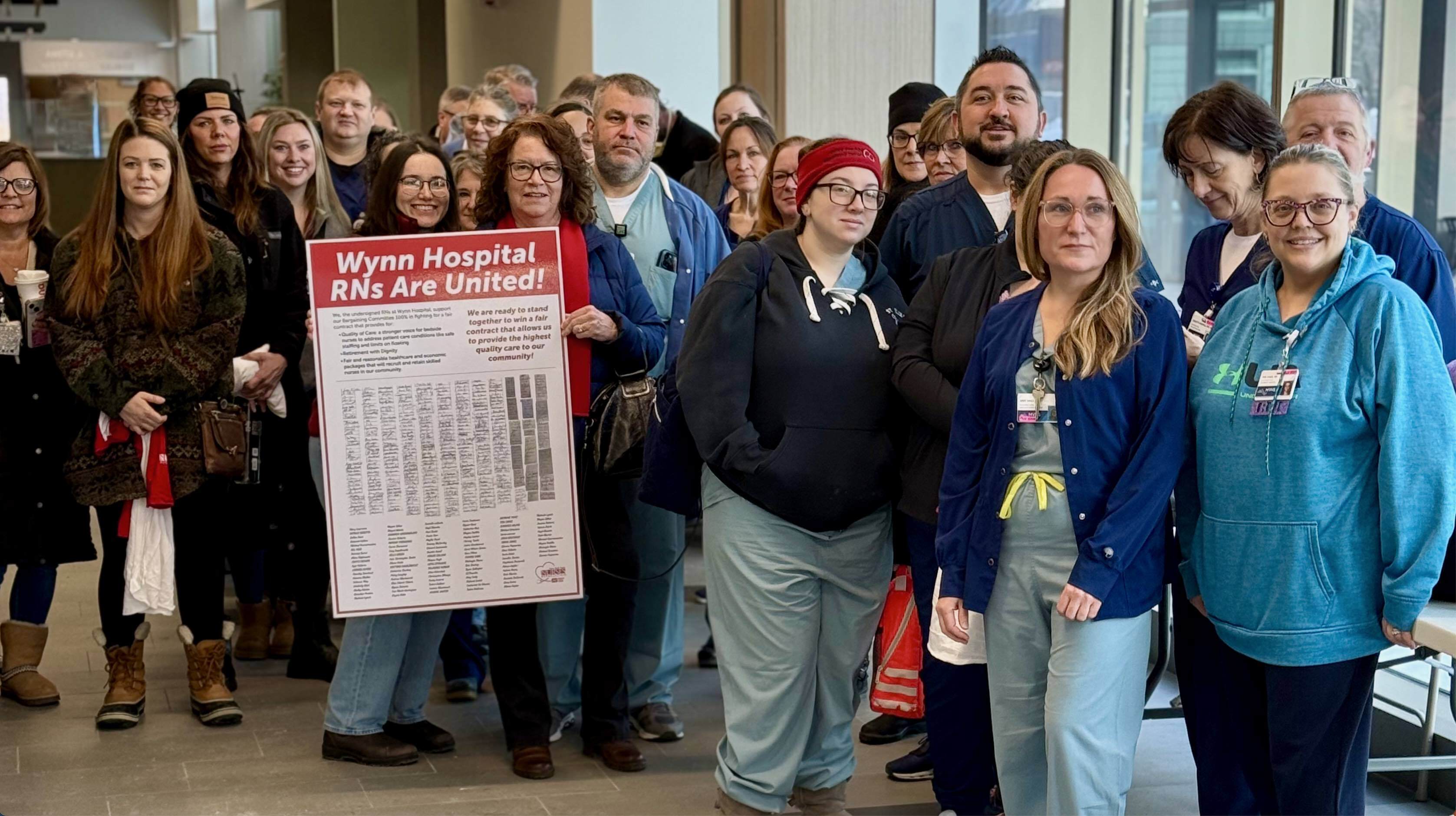 On Tuesday, Feb. 11, over 50 NYSNA nurses at Mohawk Valley Health System Wynn Hospital showed up to march on the boss and deliver a petition to the chief nursing officer. The petition — which over 500 members of the bargaining unit signed — calls on management to negotiate a fair contract with safe staffing and respectful wages and benefits to improve recruitment and retention and keep nurses at the bedside. Wynn nurses presented the petition by calling out the over 200 vacant nurse positions and the overreliance on travelers. Nurses are ready to win a contract that attracts new nurses and ensures safe staffing so that nurses are able to continue providing excellent care to their patients.