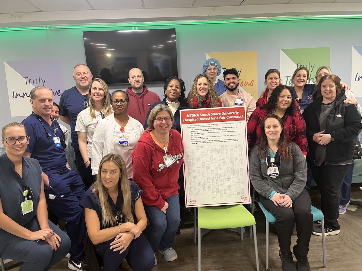 On Tuesday, Feb. 4, NYSNA nurses at Northwell South Shore University Hospital (SSUH) marched on the boss and delivered a petition, which hundreds of nurses signed, to the executive director and chief nursing officer at SSUH. The petition calls on management to deliver a fair contract with safe staffing, fair pay and improved benefits — the three core issues nurses have been fighting for at the bargaining table. The action made it clear to Northwell management that nurses are ready to do whatever it takes to settle a fair contract before it expires at the end of this month.