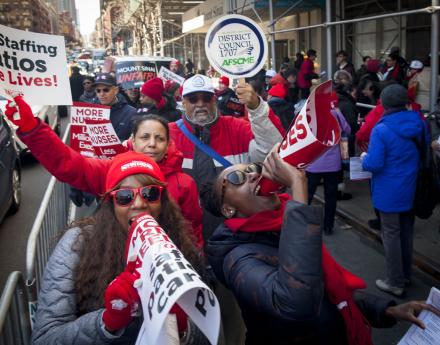 Understaffing in New York's hospitals and nursing homes puts patient safety at risk—that's why NYSNA nurses speak out for safe staffing. Whether advocating for the Safe Staffing for Quality Care Act in the New York State Legislature, or fighting and winning staffing improvements in our contracts, or enforcing safe nurse-to-patient ratios on our units, nurses will not stop until we win safe staffing on every unit, in every hospital in the state. Below are just a few of our most recent local safe staffing victories: