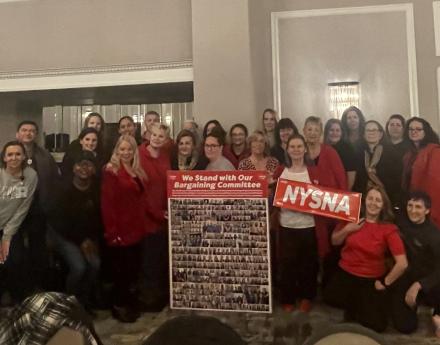 Keyword Related Campaign All CampaignsClimate JusticeElectionsLegislative IssuesHealth Equity and Social JusticeDefend Public HospitalsHealthcare for AllPolitical ActionSafe StaffingSave Healthcare ServicesStrong RN StandardsUnion Solidarity Resource Type All ResourcesBenefitBoard Meeting ResourcesConvention ResourcesCOVID-19 ResourcesLabor EducationNursing PracticeNursing ResourcesNYSNA Election ResourcesPosition StatementsPractice AlertsUnion Governance ResourcesWeekly NewslettersWorkplace ViolenceInfectious DiseasesHealth and Safety Showing: Strong RN Standards All Resources Image NYSNA Update: November 7, 2025 November 07, 2025 A Weekly Update for NYSNA Members. Image NYSNA Update: October 31, 2025 October 31, 2025 A Weekly Update for NYSNA Members. Image We Care for the North Country October 26, 2025 NYSNA nurses and healthcare professionals care for all New Yorkers, including in the North Country. This Fall, members at seven North Country facilities are bargaining for new contracts, and they’re... Image NYSNA Update: October 24, 2025 October 24, 2025 A Weekly Update for NYSNA Members. Image NYSNA Update: October 17, 2025 October 17, 2025 A Weekly Update for NYSNA Members. Image NYSNA Update: October 10, 2025 October 10, 2025 A Weekly Update for NYSNA Members. Image NYSNA Update: October 3, 2025 October 06, 2025 A Weekly Update for NYSNA Members. First page « First Previous page ‹ Previous Page 1 Current page 2 Page 3 Page 4 Page 5 Page 6 Page 7 Page 8 Page 9 … Next page Next › Last page Last » Latest Press Releases See More Releases NYSNA Nurses Applaud Passage of Hospital Workplace Violence Prevention Bill December 12, 2025 NYSNA Nurses from Northwell Hospitals Speak Out and Demand a Fair Contract that Ensures Safe Patient Care December 12, 2025 Today: NYSNA Nurses from Northwell Hospitals Speak Out and Demand a Fair Contracts that Ensures Safe Patient Care December 12, 2025 Gallery See All Photos and Videos Image Group of nurses gathered together posing with raised fist. Image Report: The State of Safe Staffing Image Elmhurst nurses hold a petition board demanding pay parity for NYC Health and Hospitals nurses Image Lincoln Hospital nurses in scrubs smiling with peace hand signs Image Albany Medical Center Nurses at the 2023 NYSNA Convention Image Long Island Jewish Valley Stream/Northwell Nurses Rally for Safe Staffing, August 2020 Image My Dashboard Your home for member benefits, upcoming events, facility news, contacts and more. Image Our Benefits Questions about your benefits? Find your contract and benefits here. Image Member Events See the latest facility events and updates here. Member Login Join NYSNA Get Updates from NYSNA
