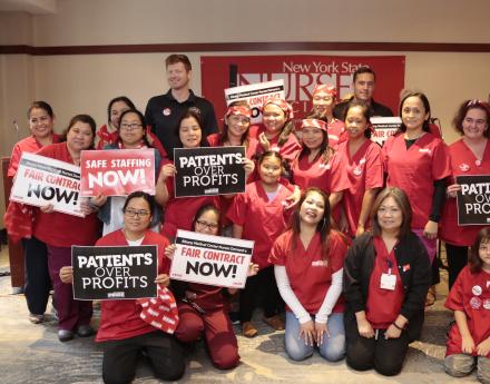 Keyword Related Campaign All CampaignsClimate JusticeElectionsLegislative IssuesHealth Equity and Social JusticeDefend Public HospitalsHealthcare for AllPolitical ActionSafe StaffingSave Healthcare ServicesStrong RN StandardsUnion Solidarity Resource Type All ResourcesBenefitBoard Meeting ResourcesConvention ResourcesCOVID-19 ResourcesLabor EducationNursing PracticeNursing ResourcesNYSNA Election ResourcesPosition StatementsPractice AlertsUnion Governance ResourcesWeekly NewslettersWorkplace ViolenceInfectious DiseasesHealth and Safety Showing: Strong RN Standards All Resources Image NSYNA Update: April 11, 2025 April 11, 2025 A Weekly Update for NYSNA Members. Image NYSNA Update: March 28, 2025 March 28, 2025 A Weekly Update for NYSNA Members. Image NYSNA Nurses at Oneida Health Picket for a Fair Contract March 27, 2025 NYSNA nurses at Oneida Health have been fighting to protect safe, quality patient care in their community, and for the fair contract that nurses and patients deserve. Historically, nurses at Oneida... Image NYSNA Update: March 21, 2025 March 21, 2025 A Weekly Update for NYSNA Members. Image NYSNA Update: March 14, 2025 March 14, 2025 A Weekly Update for NYSNA Members. Image NYSNA Update: March 7, 2025 March 07, 2025 A Weekly Update for NYSNA Members. Image NYSNA Update: February 28, 2025 February 28, 2025 A Weekly Update for NYSNA Members. First page « First Previous page ‹ Previous … Page 3 Page 4 Page 5 Page 6 Current page 7 Page 8 Page 9 Page 10 Page 11 … Next page Next › Last page Last » Latest Press Releases See More Releases NYSNA Nurses Applaud Passage of Hospital Workplace Violence Prevention Bill December 12, 2025 NYSNA Nurses from Northwell Hospitals Speak Out and Demand a Fair Contract that Ensures Safe Patient Care December 12, 2025 Today: NYSNA Nurses from Northwell Hospitals Speak Out and Demand a Fair Contracts that Ensures Safe Patient Care December 12, 2025 Gallery See All Photos and Videos Image Group of nurses gathered together posing with raised fist. Image Report: The State of Safe Staffing Image Elmhurst nurses hold a petition board demanding pay parity for NYC Health and Hospitals nurses Image Lincoln Hospital nurses in scrubs smiling with peace hand signs Image Albany Medical Center Nurses at the 2023 NYSNA Convention Image Long Island Jewish Valley Stream/Northwell Nurses Rally for Safe Staffing, August 2020 Image My Dashboard Your home for member benefits, upcoming events, facility news, contacts and more. Image Our Benefits Questions about your benefits? Find your contract and benefits here. Image Member Events See the latest facility events and updates here. Member Login Join NYSNA Get Updates from NYSNA