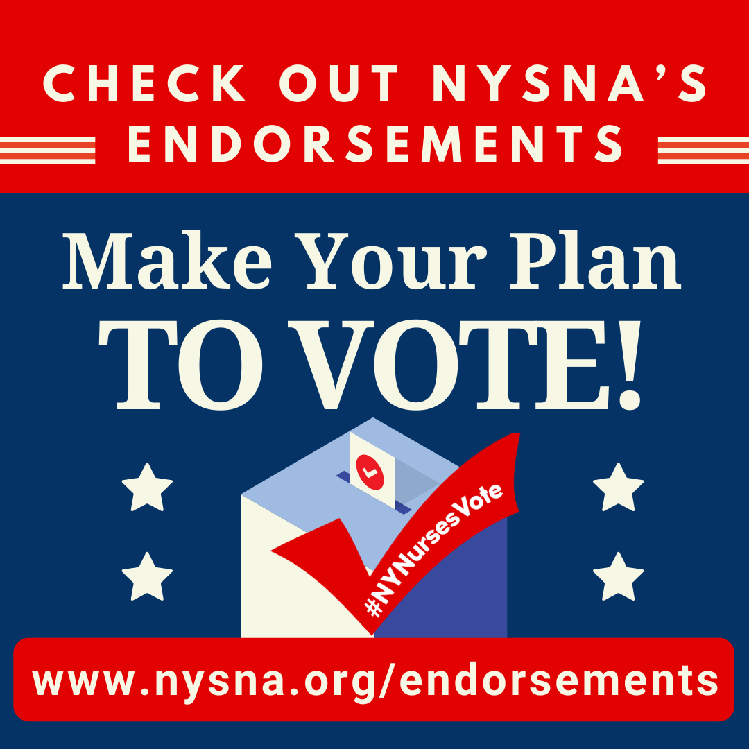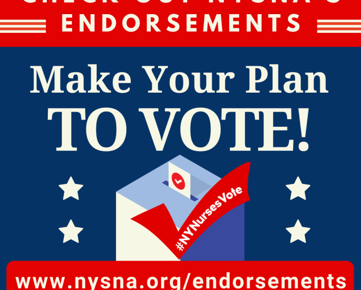 In November, New Yorkers will get to elect candidates to statewide offices, the NYS legislature, and US Congress. Voting in the general election is important to ensure our voices are heard in Albany and beyond! We encourage members to stay informed and engaged and return to this page for the latest deadlines and NYSNA voter information.