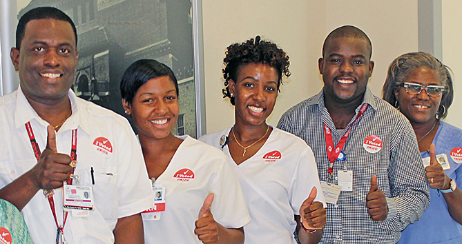 Pictured above KCHC, from left – Christopher Dubisette, Junietha Goodwin, Marlena Brown, Leunz Cadely, and Dallas Gordon-Grant