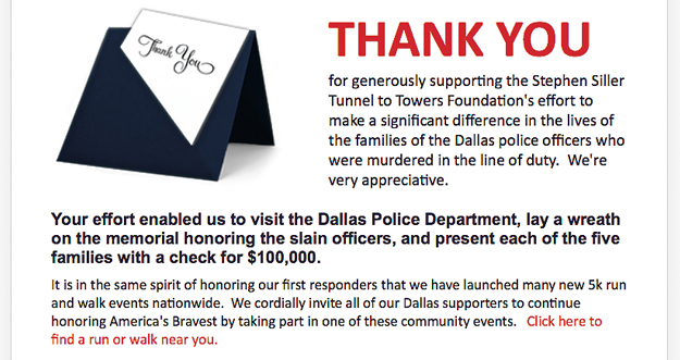 In honor of the sacrifices made by 9/11 first responders, NYSNA has contributed to the Stephen Siller Tunnel to Towers Foundation. NYSNA previously made a contributed to Tunnel to Towers to assist the families of the slain police officers in Dallas.
