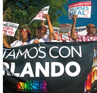 Innoh Ngbodi, an RN at Vassar Brothers Medical Center, joined the march. “This is my community,” he said. “As nurses, we see these incidents firsthand when the victims of gun violence come to the hospital. This violence effects the community. It effects the people we serve. The hospital gets overwhelmed with this kind of violence on a daily basis.”