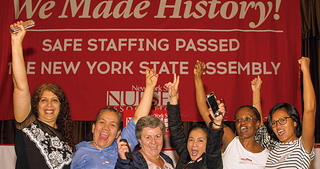 The timing of the conference presented an opportunity for members from across the state to celebrate our two recent legislative victories: the Assembly’s June 14 passage of the Safe Staffing for Quality Care Act (see pages 7-10) and the Assembly and Senate’s near unanimous June 17 endorsement of the Enhanced Safety Net Hospital bill.