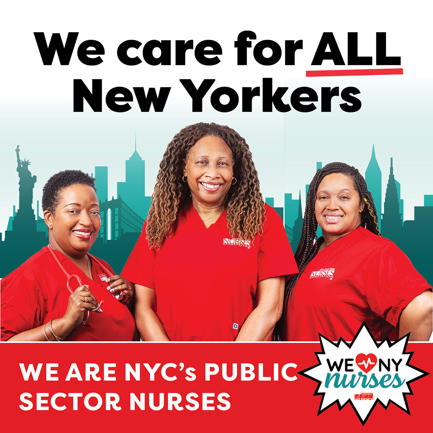 NYSNA President Nancy Hagans, RN, BSN, CCRN, said: “To my siblings in the public sector: All of the private sector is with you! All of NYSNA is with you! Nurses around the country are with you! Your fight for health equity is our fight and we won’t stop until we win a fair contract for the H+H and Mayorals nurses and health equity for ALL!”