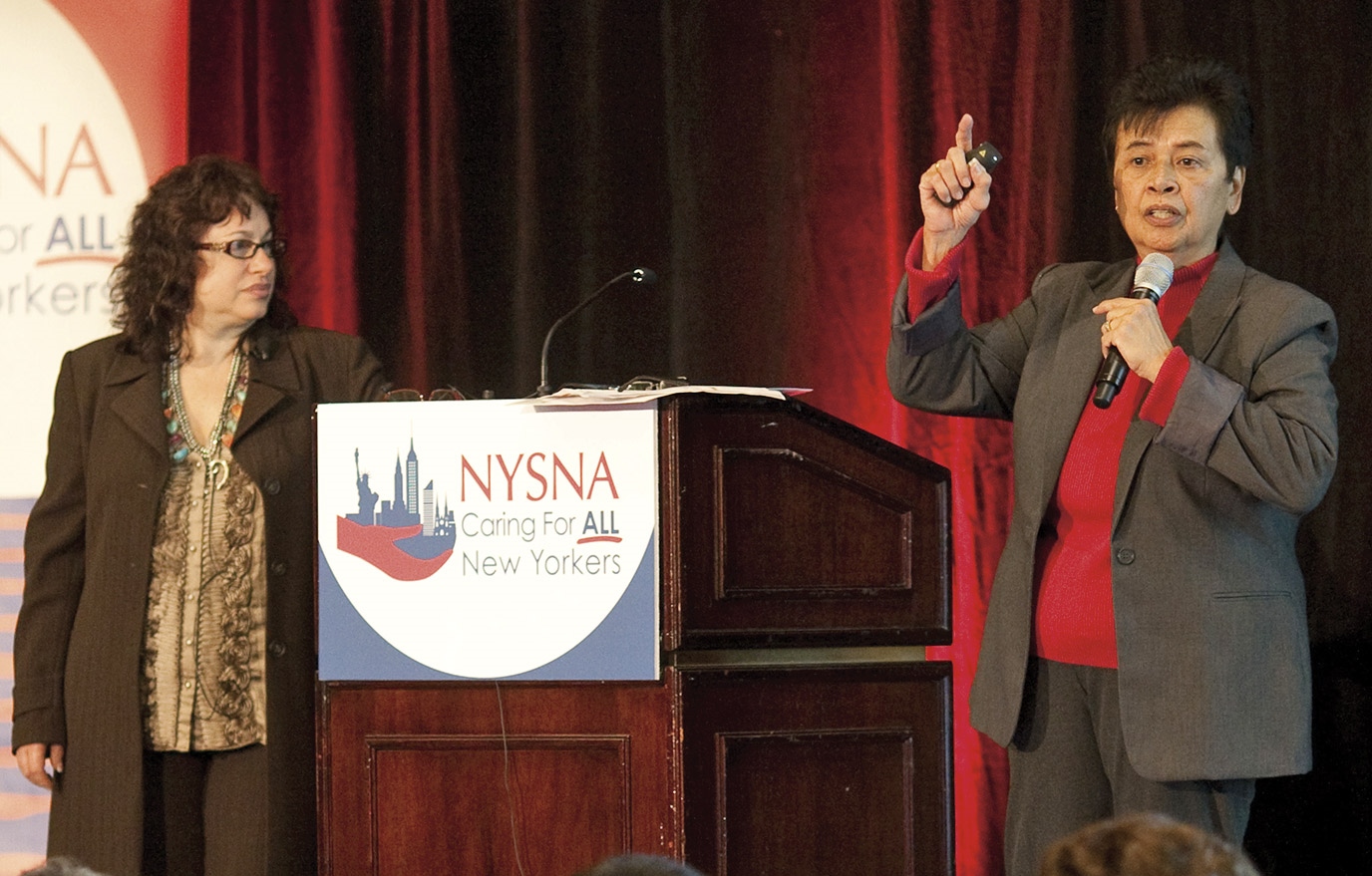 We’re taking a stand on four key principles: patients before profits; safe staffing; universal healthcare; and nurses’ organizing rights. We’re fighting to keep for-profit hospitals out of our state. We’re fighting for a safe staffing law to protect patients and nurses. We’re advancing the idea that the only real solution to America’s healthcare crisis is a single-payer system that covers everyone. And we’re helping nurses across New York State join NYSNA and win the power that comes with being union together.