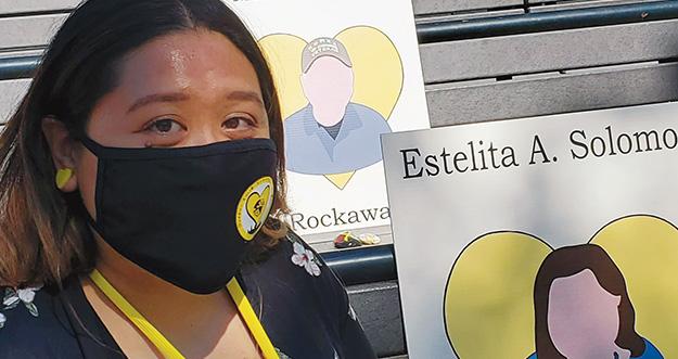Cathrine Solomon, RN, NYSNA member and oncology nurse at Mount Sinai Hospital, sits on the QCRC. She has experienced far more than her share of loss. Her mother, Estelita Atienza Solomon, RN, a retired head nurse from Wyckoff Heights Medical Center, died due to the virus on April 10, 2020. Her father passed away the month before, also from COVID-19. Her uncle died from the virus, on April 16, 2020. Cathrine was infected as well and continues to suffer the virus’s effect.