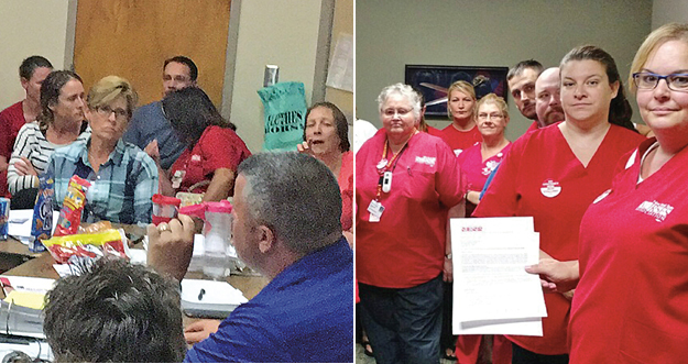 Hot summer days haven’t slowed down NYSNA members at St. Elizabeth Medical Center and Samaritan Hospital in their pursuit of fair contracts that improve staffing levels. At their August 15 contract negotiating session, St. Elizabeth nurses delivered a 10-day strike notice to management. The very next day, NYSNA members at Samaritan Medical Center walked in their own 10-day notice to hospital management. Nurses at the two hospitals plan one-day strikes on September 1.