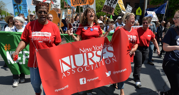 NYSNA members and President Judy Sheridan-Gonzalez, RN, took part in the May 14 Break Free action, which brought together 1,500 people from 100 organizations in Albany’s Lincoln Park to call for an end to the “bomb trains” used to transport gas and oil and that seriously endanger community health and safety.