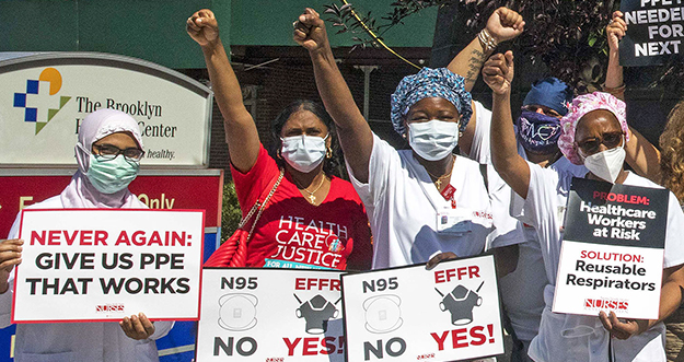 Tansia Freeman, an Emergency Department nurse at Brooklyn Hospital echoed these sentiments. “The first surge was a bad dream, and we need to be prepared for another one,” Freeman said. “RNs are still on the front lines, doing what we do best. We need the best PPE possible in order to do it.”