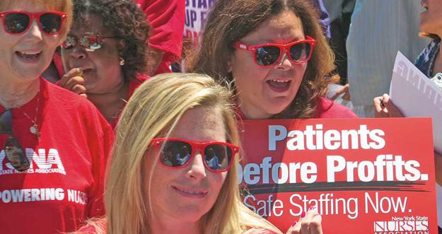 While management has added a few RN positions, VBMC nurses are still working far below the standards management itself indicated as adequate and which were codified into the NYSNA contract. Cyndi Sexton, RN and VMBC NYSNA Executive Committee Member, reported that instead of hiring new staff to meet the higher patient census, “Nurses are being mandated to work overtime — made to stay 16, 17 hours and it’s not safe.” To add insult to injury, the hospital implemented a “dependability policy” that penalizes exhausted employees for getting sick.