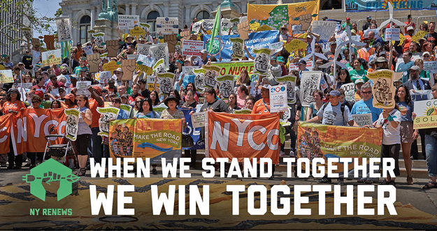 New Yorkers won a victory for climate justice on June 1, 2016 when the Assembly passed the New York State Climate and Community Protection Act (A.10342). Earlier that day, nurses rallied with our partners from NY Renews, a climate justice coalition that NYSNA members helped to form back in December. Our coalition includes more than 70 community, environmental, labor, social justice, and political organizations, including 1199SEIU and the Working Families Party. NY Renews drafted the legislation, which ThinkProgress called “the most ambitious climate bill in the nation,” and then lobbied to make it an Assembly priority and ensure passage in this year’s session.